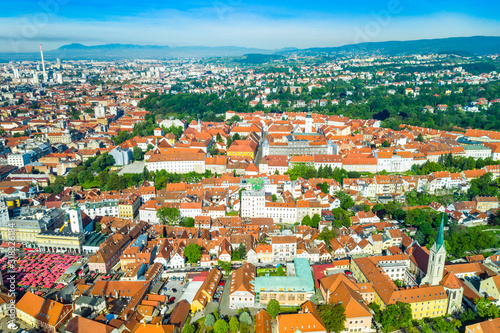 © ilijaa, Fototapeta premium Aerial view of Zagreb, capital of Croatia, city center and Upper town, urban landscape