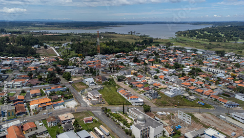 © Roberto, Fototapeta premium Aerial view on a sunny day of the city of Quatro Barras, located in the Metropolitan Region of Curitiba, capital of Parana, Brazil.