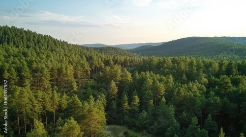 Obraz premium Aerial view on green pine forest