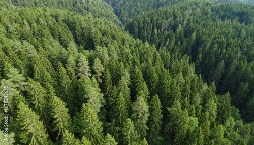© Faqih, Obraz premium Aerial view on green pine forest