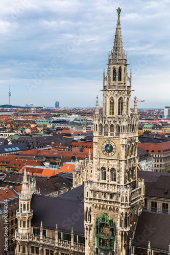 © Sergii Figurnyi, Naklejka premium Aerial view on Marienplatz town hall