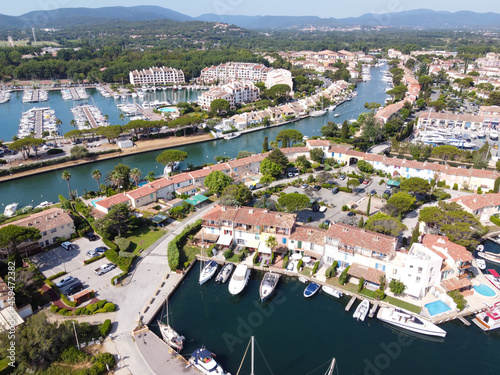 Obraz premium Aerial view on small houses and sailboats of Port Grimaud and port Cogolin,...