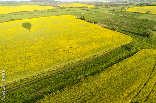© neupokoev, Fototapeta premium Aerial view on yellow fields