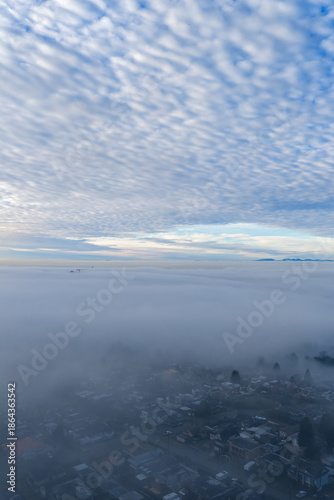 Obraz premium Aerial View Over Cloud Layer With Mountain Horizon And Beautiful Blue Sky At Dawn Today