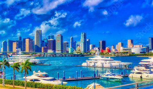 © Goran, Naklejka premium Aerial view over financial district of Miami, Florida, USA.