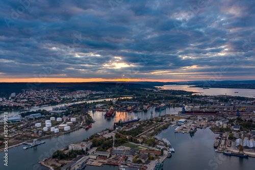 © Dimitar, Fototapeta premium Aerial view over port Varna