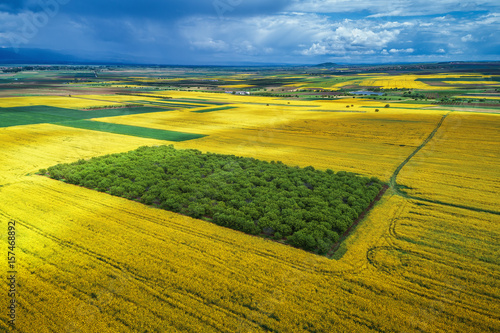© ValentinValkov, Fototapeta premium Aerial view over the agricultural fields