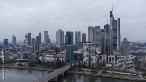 Naklejka premium Aerial view over the financial district of Frankfurt Germany - travel photography