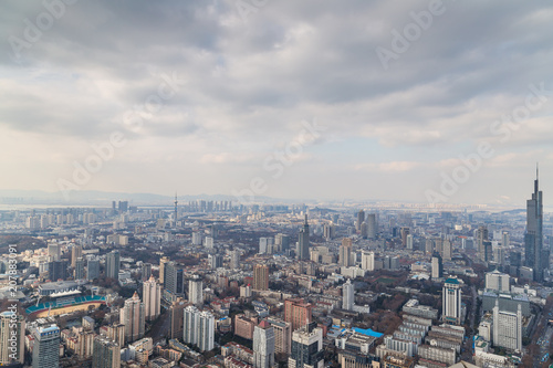Fototapeta premium Aerial view over the Nanjing city, urban architectural landscape