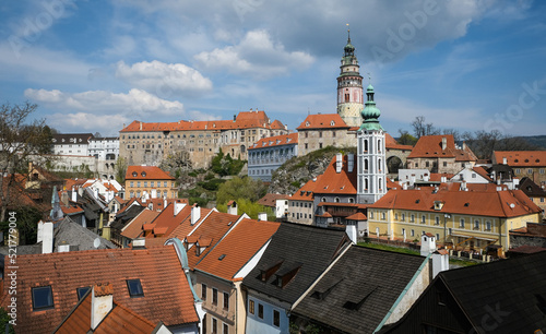 Obraz premium Aerial view over the old Town of Cesky Krumlov, Czech Republic