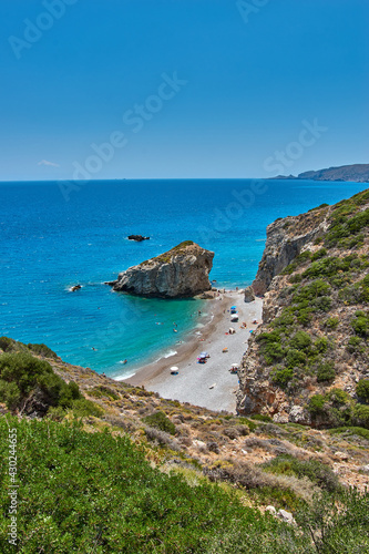 © panosk18, Fototapeta premium Aerial view over the rocky Kaladi beach, in Kythira island during Summer period in Greece, Europe