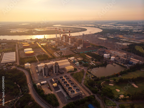 © Nana44, Obraz premium Aerial view Power plants, petrochemical plants At sunset.