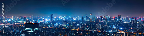 © hope, Obraz premium Aerial view Smart cityscape dot point connect with gradient line, connection technology in background