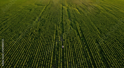 © aan, Fototapeta premium Aerial view sunflower field with sunset.