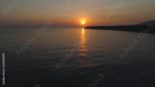 Naklejka premium aerial view sunrise over ocean. seascape colorful sunrise over sea at...