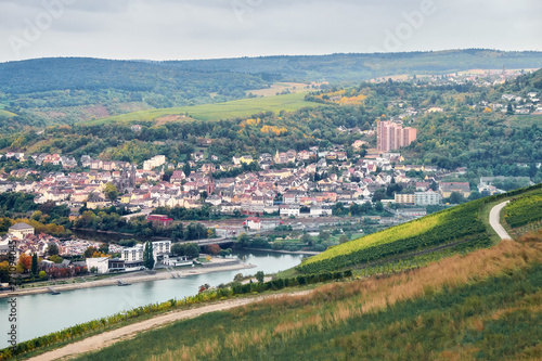 © Margarita, Fototapeta premium Aerial view to the Bingen am Rhein town from a tourist route not far from Rudesheim am Rhein