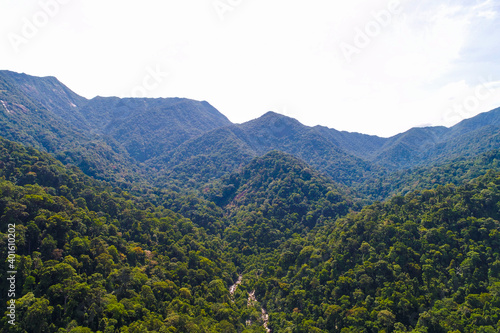 Naklejka premium Aerial view tropical green mountain forest