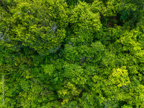 © themorningglory, Naklejka premium Aerial view tropical rainforest on sea island