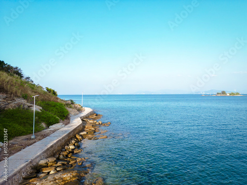 Obraz premium Aerial view walk and run pathway sea beach tropical island