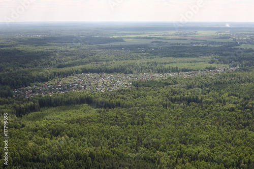 © Primastock, Obraz premium Aerial Views - Russian village in the wood