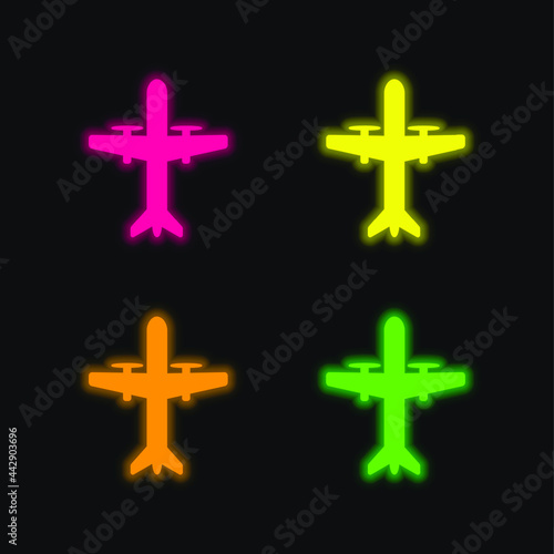 Obraz premium Aeroplane With Propellers four color glowing neon vector icon