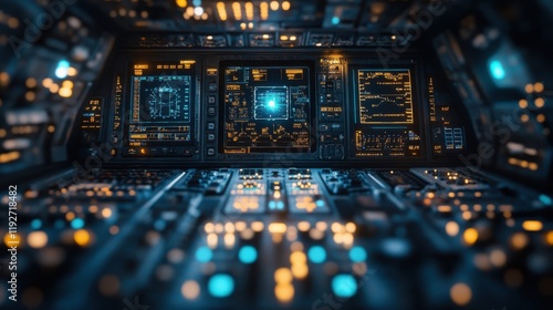 © rookielion, Obraz premium Aerospace industry equipment emphasizing precision on operations control backdrop, technical mastery theme