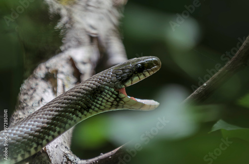 © Aleksadar, Fototapeta premium Aesculapian snake at the tree