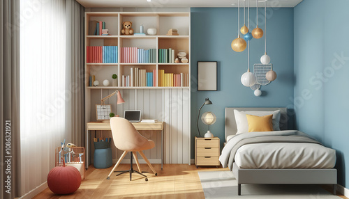 © Morning Dew, Fototapeta premium Aesthetic and modern single bedroom