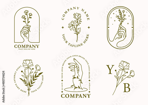 Fototapeta premium Aesthetic and simple floral decorative logo vector elements collection