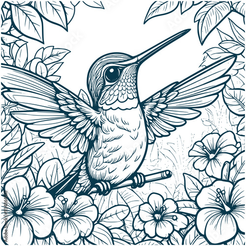 © SeptionUniverse, Obraz premium Aesthetic Baby Hummingbird Silhouette Graphic Forest Scenery Vector Illustration