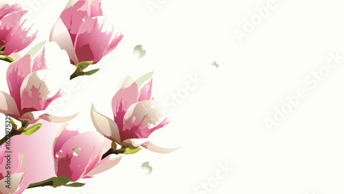 Naklejka premium Aesthetic illustration of pink and white magnolia flowers with a soft focus and minimalist background design