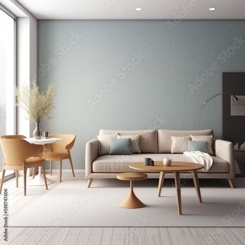© Solstice, Fototapeta premium Aesthetic Living room Realestate Mockups, Generative AI
