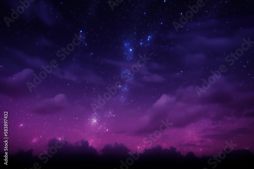 Fototapeta premium aesthetic purple sky stars background landscape Generative AI