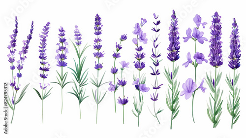 Naklejka premium Aesthetic watercolor of lavender flowers Delicate romantic pattern on a white...
