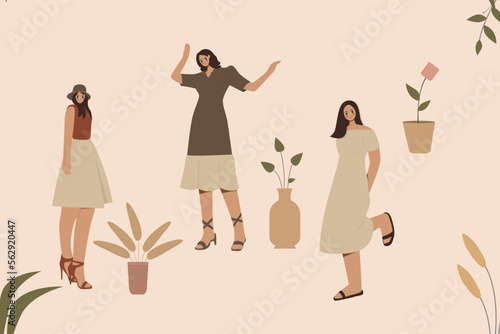 Obraz premium Aesthetic Woman Boho Flat Illustration