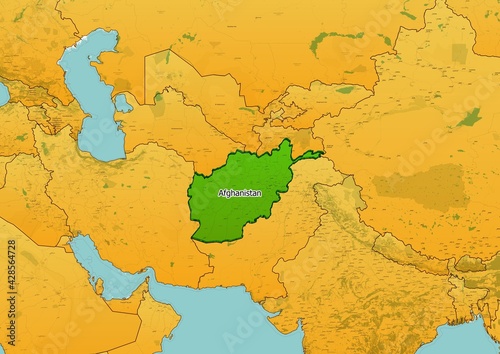 Fototapeta premium Afganistan map showing country highlighted in green color with rest of South...