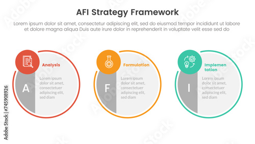 © ribkhan, Naklejka premium AFI strategy framework infographic 3 point stage template with big circle symmetric and small circle badge on horizontal direction for slide presentation