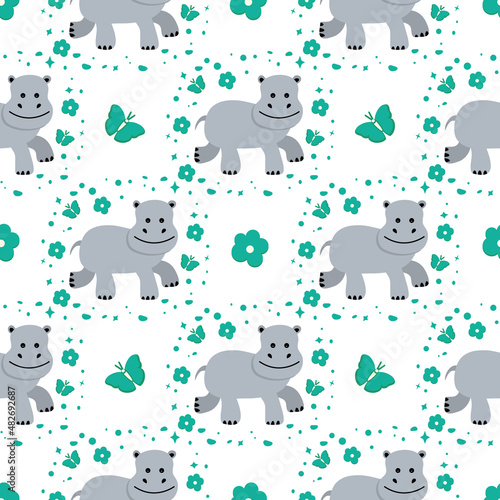 Fototapeta premium Africa Animal Childish Pattern Hippopotamus Zoo