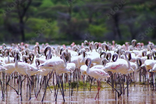 Fototapeta premium Africa. Kenya. Lake Nakuru. Flamingo. Flock of flamingos. The nature of Kenya. Birds of Africa.