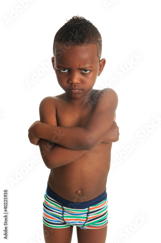 © Black-photography, Fototapeta premium African American child shirtless black curly hair isolated