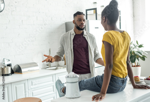 Fototapeta premium african american couple having relationship difficulties at kitchen
