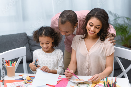 © LIGHTFIELD STUDIOS, Fototapeta premium african american parents and daughter making greeting card