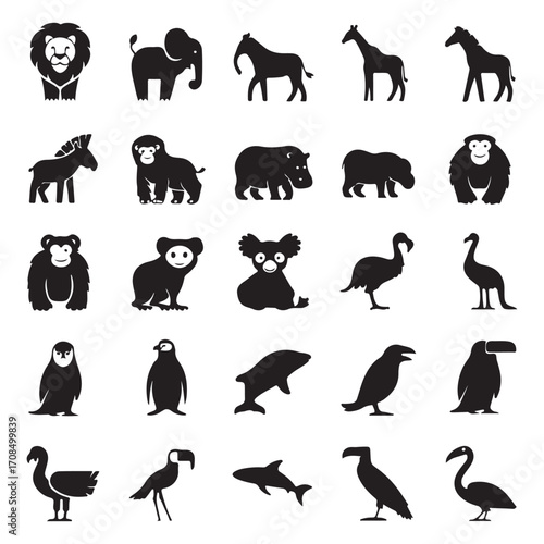 © Silicon, Fototapeta premium African and Jungle Animals Silhouette Vector Pack, Wild Creatures and Birds