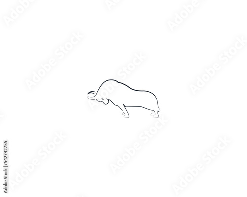 Fototapeta premium African Bison bull Logo design Template, Black silhouette in profile of an aggressive powerful bull fighting Logo, trademark farm, label, emblem, sign isolated on white background Vector illustration
