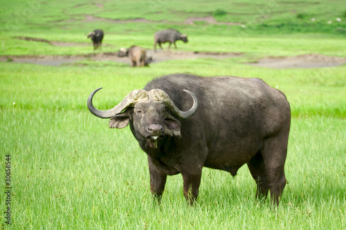 © Natalia Pushchina, Obraz premium African buffalo in a field of grass