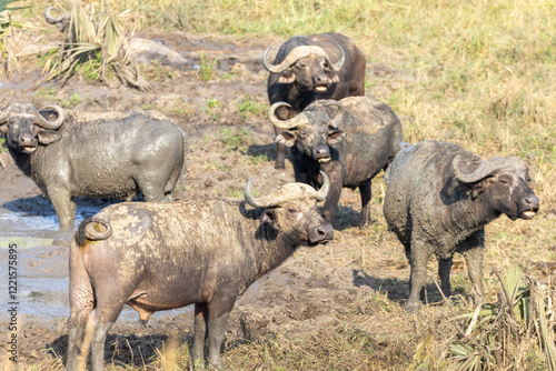 © Leon, Fototapeta premium African buffalo mudbathing