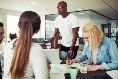 © Flamingo Images, Obraz premium African businessman talking with colleagues around an office tab
