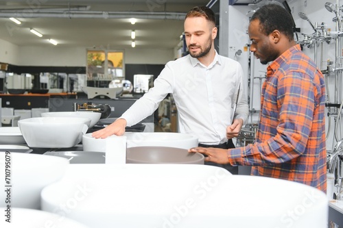 © Serhii, Obraz premium African customer with salesman in store for the house