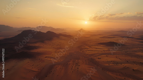 © Abdo, Naklejka premium African Desert Sunrise : Stunning Drone Aerial Cinematic Shot Enhanced with AI
