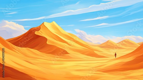 © SETSU ST, Naklejka premium African desert with wind-sculpted sand dunes, leaving space for copy